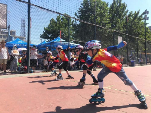 上午9点,比赛正式开始!赛场上,小选手们身着比赛服,脚踩轮滑鞋,一个个奋勇向前,博得了在场观众的阵阵掌声。
