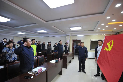 重温入党誓词,坚定理想信念。全体党员起立,佩戴党徽,面向党旗,庄严宣誓。通过重温誓词来回顾我们入党时的庄严承诺,增强党员意识,遵守党的纪律,时刻提醒着自己所肩负的使命和责任,不断强化对党的忠诚及对共产主义事业的不懈追求。