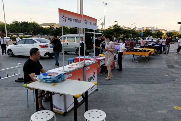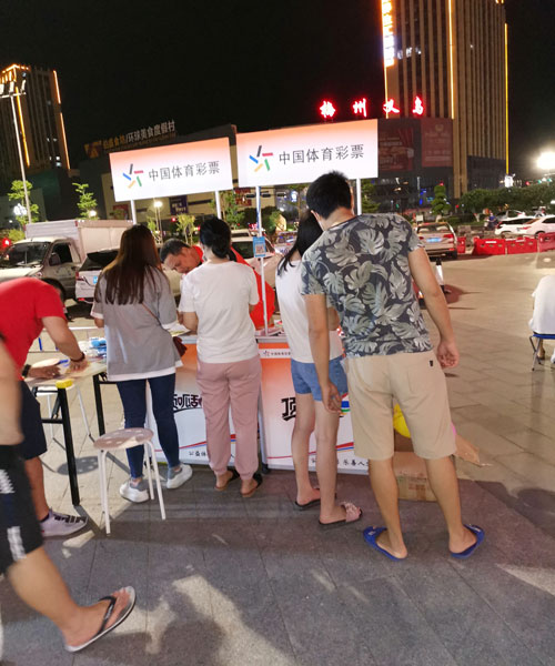 今年6月初,当黄老板获知商铺和超市即将组织举办“地摊”卖场活动时,他迅速报名参加并第一时间与专管员、梅州体彩中心联系。梅州市体彩中心高度重视,给予礼品与宣传物料支持,并委派专管员驻场,协助代销者于6月19日—20日参与梅州首场即开票“地摊”卖场活动。