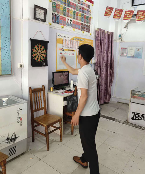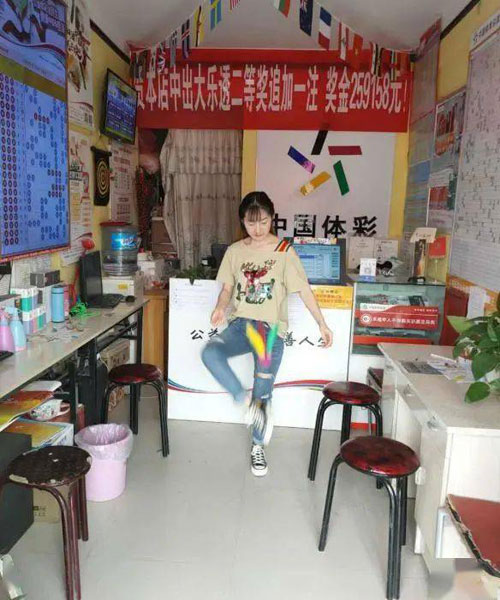 赣州上犹县3606034007体彩实体店,配备了呼啦圈、毽子、跳绳、飞镖等运动器材,电子走势图画面还不停播放运动指导视频。实体店代销者朱茂元不仅自己主动参与,还积极宣传“点亮健康中国”活动,邀请购彩者们来店里运动打卡。他经常说:“年轻人别宅着,买完彩票跳跳操、踢踢毽子、扔扔飞镖,不仅锻炼了身体,还能参与抽奖活动,为点亮城市助力,大家都十分开心。”