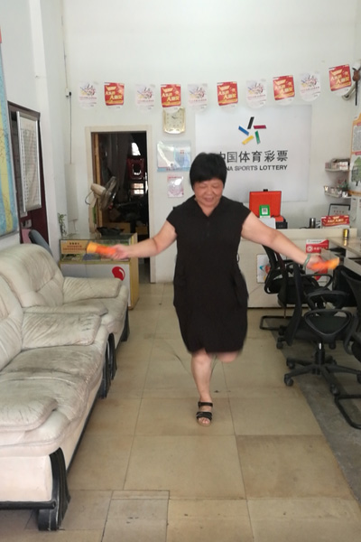 运动不分年龄,看,3612012406实体店代销者老邬的老伴儿正在店里跳绳呢!老邬今年60多岁了,却一直坚持学习新的技能,听说有“点亮健康中国”的活动,第一时间提出参加,更是号召店里的购彩者也一起参与。“快来,你们都来参与运动打卡,运动的同时做了公益,又可以抽奖。年轻人要多动起来,不要整天拿着手机,体彩给大家配备了这些器械,我们一起来运动。”老邬对进店的人说道。