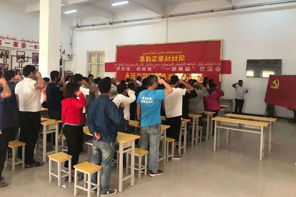 活动的最后,全体党员重温入党誓词,同唱《没有共产党就没有新中国》。老村长吾拉依木.艾力激动地说:“这次活动给我村党支部增加了活力,进一步激发出了党员干部群众感恩党、热爱国家,热爱社会主义、热爱中华民族的热情,感谢新疆体育彩票管理中心党支部的关心。”