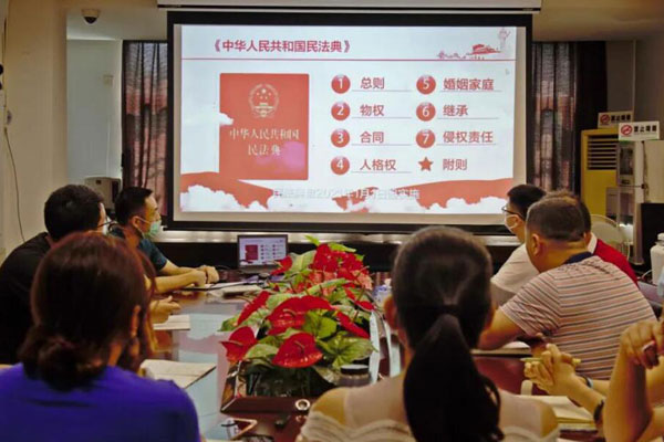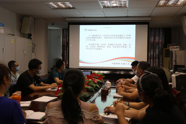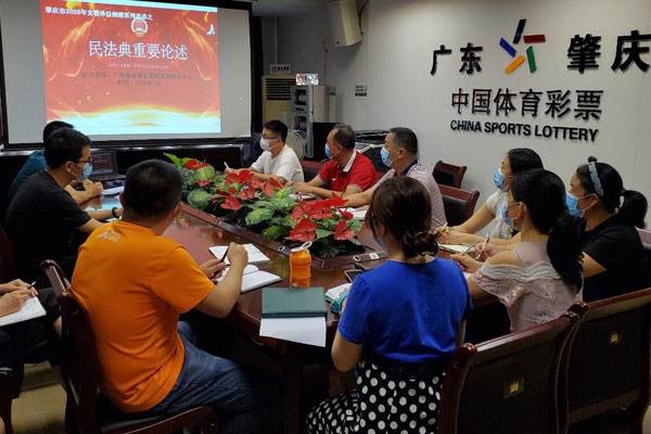 为深入推进《中华人民共和国民法典》的贯彻落实,努力营造尊法、学法、守法、用法的浓厚氛围,6月29日下午,肇庆市文广旅体局正处职干部罗小兵同志到肇庆市体彩中心组织开展《中华人民共和国民法典》专题学习,肇庆市体彩中心全体干部职工20人参加集中学习。