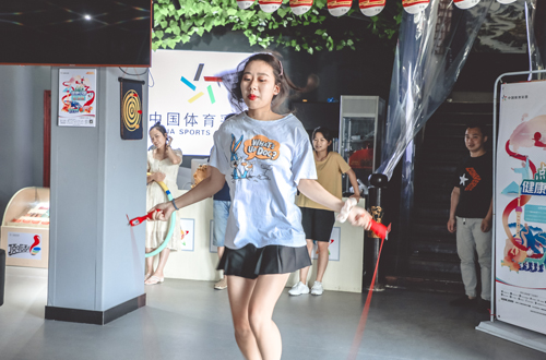 体彩店内,跳绳、飞镖、呼拉圈、毽子等便捷运动小器材应有尽有,还录制了运动指导视频,让参与者在体彩实体店尽情体验运动乐趣,让体育彩票更接地气、传递健康。