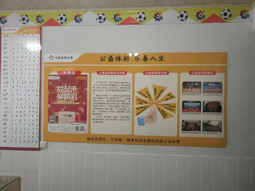 体彩实体店是体彩公益展示的重要窗口,代销者们除实体店内付诸的点滴公益,店外也身体力行践行着公益行为。冯安萍的彩票店位于人气较高的街边,附近也有很多住宅小区,除了给大家提供力所能及的帮助,他也积极为体彩公益“代言”。“我觉得自己从事这份职业很光荣,小区运动器材,体育馆等,都是体彩公益金资助建设的,像店里墙上张贴的这个公益专区,就是专门宣传我们萍乡体彩公益金的使用地方”。
