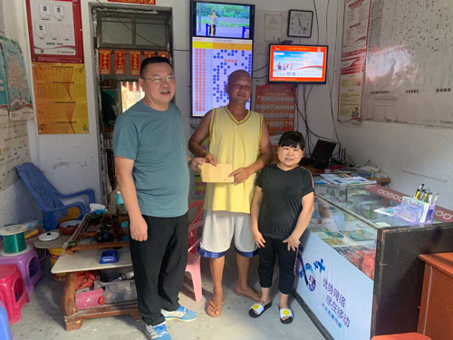 活动中,慰问小组分别深入到茂南、高州、化州、电白、信宜等10个困难实体店进行了走访。在茂名市这些困难实体店中,有不幸患上腰部韧带纤维瘤、无怨无悔奋战体彩一线的销售员,有遭遇车祸同时查出重疾的代销者和销售员,有身患糖尿病多年并突发脑中风的低保户代销者,也有因身患脑部残疾丧失基本劳动能力、为治病欠下巨债的代销者,不过生活的困难和身体的不便都没能击倒他们,他们每一个人都自立自强,把体育彩票销售当成自己的事业,始终坚守在体育公益的最前线,为公益体彩作出着自己的贡献。