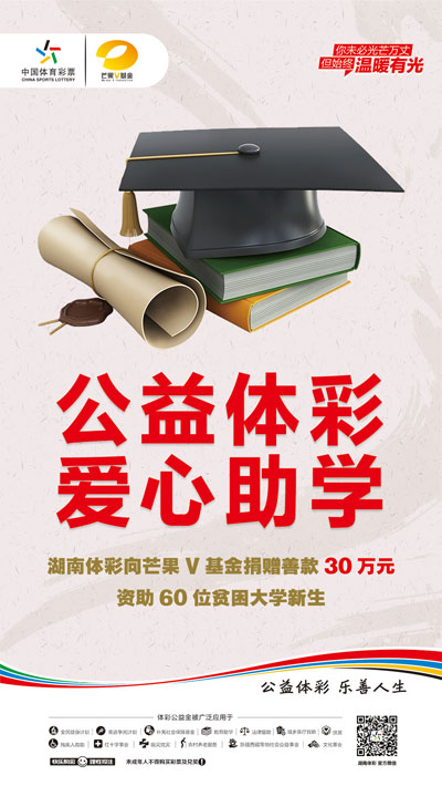 近日,湖南省体育局体育彩票管理中心向芒果V基金捐赠善款30万元,将用于资助60位湖南省少数民族贫困地区的贫困大学新生。据悉,“2020芒果助学季”将于8月上旬温暖开启,这是由芒果V基金携手湖南省关心下一代工作委员会、湖南省体育局体育彩票管理中心共同发起的一项针对湖南省少数民族贫困地区的贫困大学新生的助学公益项目。“芒果助学季”已经坚持开展数年,帮助了上千名品学兼优的贫困学子。今年资助人数将超过200名。