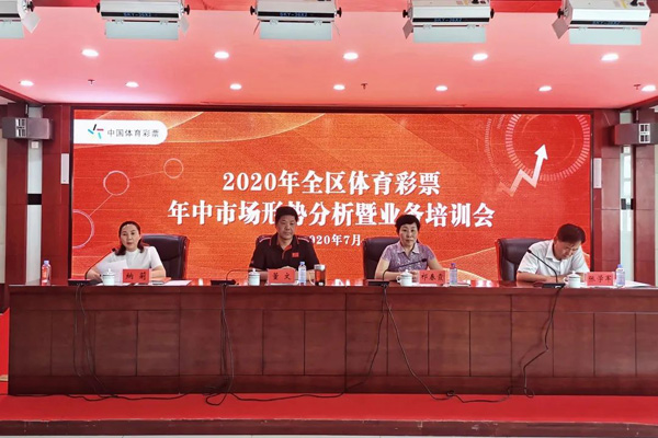7月22日-23日,宁夏体育彩票管理中心召开2020年全区体育彩票年中市场形势分析暨业务培训会。自治区体育局党组成员、副局长董文,自治区财政厅综合处和自治区体育局经济处相关领导出席会议,宁夏体彩中心全体人员参加会议。