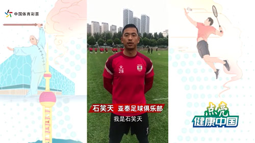 来自亚泰足球俱乐部张力、谭龙、石笑天三位球员作为代表,发出号召“一起来参与点亮健康中国活动吧!”,他们用自己的声音和力量汇聚温暖,希望通过他们的号召让更多人感知到体彩公益品牌内核,传递中国体育彩票助力健康中国发展的公益品牌形象,彰显体彩社会责任与担当。