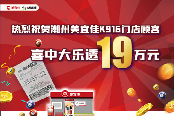 7月18日好消息再次传来,潮州市一位幸运顾客,在当地美宜佳兼营店通过扫码参与活动,获得一张6元的免费赠票进行投注,喜中20064期体彩大乐透二等奖,奖金高达19万元,该顾客已于7月21日领取了奖金。