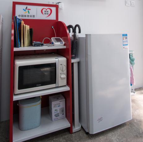 方春荣介绍,他的店是最早一批成为体彩驿站的,一直为周边居民服务,去年,省体彩中心升级了体彩驿站,还给店里配了冰箱、微波炉、血压仪、党建书籍等,能更好地服务大家了。“你看,我们店里,体彩驿站就充分发挥着作用。这儿有充电器、热水、电冰箱、微波炉、雨伞等便民用品,为购彩者、环卫工人、快递小哥等人群服务,体彩暖心把爱送给大家。