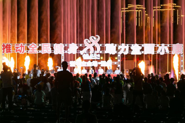 8月7日晚,2020浙江省“全民健身日”主会场活动在温州白鹿洲公园南塘印象观影秀广场举行。主会场活动分启动仪式和全民健身活动展示两部分,现场共有800人参加。中国体育彩票“健康中国 光芒燃动”为主题的品牌落地活动同时进行。