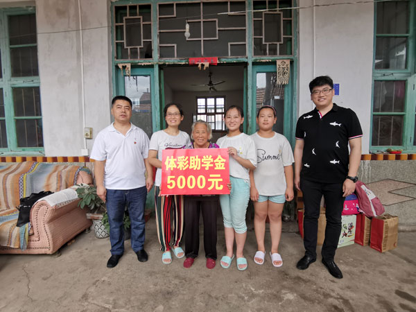一份爱心就是一份力量,一份关怀就是一份希望。8月14日,潍坊体彩爱心助学活动走进安丘市郚山镇墨黑村,为家庭困难的两名品学兼优的孩子送去5000元助学金,安丘体彩学雷锋志愿服务站的志愿者们为两个孩子送去了学习用品、服装鞋袜和米面油等慰问品。