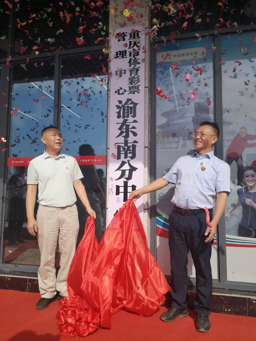 今日(19日)上午,重庆市体育彩票管理中心渝东南分中心揭牌仪式正式举行。市体育局党组成员、二级巡视员陈玉林,黔江区人民政府副区长谢承刚共同为渝东南分中心成立揭牌。市体彩中心主任张小波、工会主席何毅,黔江区文旅委副主任王勉等领导出席揭牌仪式并实地查看分中心办公场地。