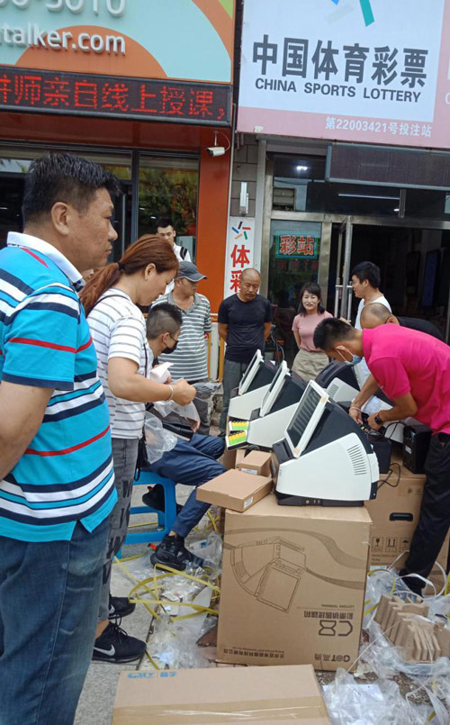 “各位排好队,按顺序进行,乡镇优先争取上午全部完成”、“主机、键盘、电池、数据线会逐一核对检查,请各位积极配合”、“调试机器,现场出票”……位于榆树市健康路编号为2201003106阳光海岸体彩实体店前,汇集了数十位体彩实体店的代销者和销售员,脸上洋溢着满意和欣慰的笑容。体彩中心的工作人员一丝不苟,紧张有序按部就班的推进工作。原来,由长春市体彩中心主任韩旭东带队,一行7人正在为榆树市的所有体彩实体店进行更新终端机。