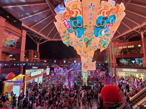 “燃动中国”全民健身嘉年华活动现场,嘉宾点亮仪式
