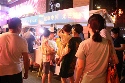 8月21日,金华市体彩中心组织员工在江北步行街开展“健康中国 光芒燃动”品牌落地推广宣传活动。活动结合“公益一杯水”和“健康公筷”两大主题,融入为户外工作者送清凉,向市民赠送“公筷”等环节,让更多的人走近体彩,了解体彩,更好地宣传阳光、健康的品牌形象,展现中国体育彩票的公益精神。