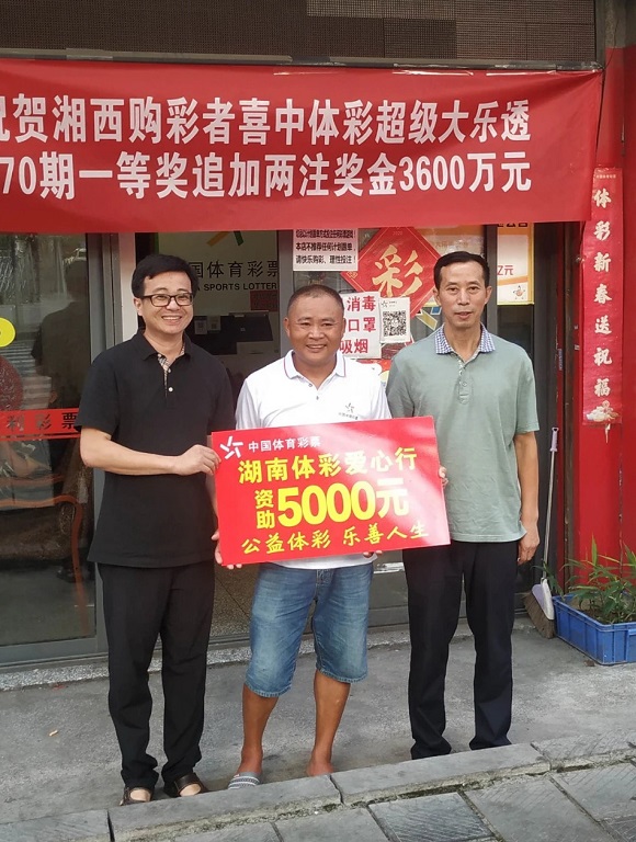 值得一提的是,湘西3600万元大奖得主在领奖时捐款80万元,指定用于救助家庭困难的体彩销售人员。他是因为上网查询如何领奖时,了解到有一些体彩销售人员非常很困难,所以在领奖时才主动提出捐出的款项用于帮扶他们。