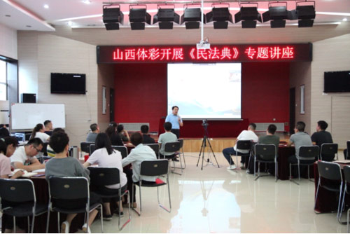 2020年5月28日,第十三届全国人民代表大会第三次会议表决通过《中华人民共和国民法典》。9月4日,山西体彩中心开展第二次集中学习《民法典》,邀请山西国晋律师事务所王莹律师对全体职工作《民法典》专题讲座。省体彩中心主任康兰福、副主任王旭山参加讲座,副主任张淑英主持。