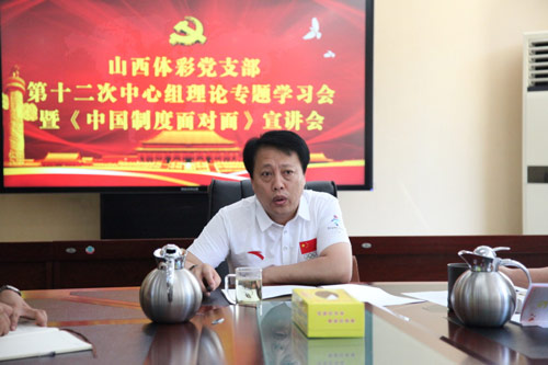 9月10日下午,山西省体彩中心党支部召开第十二次中心组理论学习会暨《中国制度面对面》学习宣讲部署会。会议分三个部分进行,首先是中心组全体观看全国抗击新冠肺炎疫情表彰大会焦点访谈特别节目《数风流人物 豁得出 冲得上 打的赢》和如何理解、认识习近平总书记强调的伟大的抗疫精神视频短片;随后由支部副书记领学《习近平谈治国理政》第三卷专题二《坚持和加强党的全面领导》、专题九《推动经济高质量发展》;最后支部书记就《中国制度面对面》系统学习宣讲工作做出安排部署。