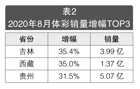 今年全国彩票销量下降较多的主要原因是受新冠肺炎疫情影响,彩票春节休市时间较长,其中最少的省份休市49天,最长的达105天,而往年春节休市通常为7天至10天。仅从体彩8月份的销售数据来看,还是有诸多亮点的。