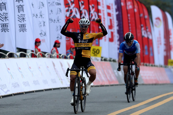 经过激烈角逐,最终由25号黄京、211号蔡正卿、555号谢宇、719号王祥梅分获本站比赛男子公路精英组、男子山地精英组、男子山地大师组、女子山地精英组冠军。