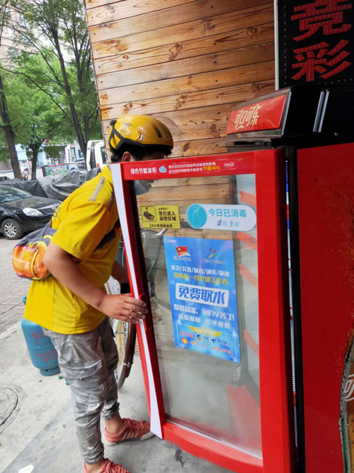 共青团河北省委宣传部和河北省体彩中心联合主办的“‘青’凉驿站 炫‘彩’一夏——夏日送清凉公益活动”已连续举办三年。主办方为参与活动的体彩店配备冰箱一台,放在店门口,方便交敬、环卫工人、快递员、建筑工人等户外工作者饮用。
