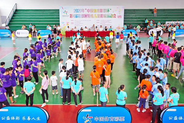 10月2日,广州市花都区体育中心风雨篮球场内荡漾着笑语欢声,2020年“中国体育彩票杯”区第4届特殊儿童趣味运动会正式开幕。本次运动会由中国关心下一代工作委员会事业发展中心幼儿体操部、花都区民政局指导,区文化广电旅游体育局、新华街道办事处联合主办,区奥体青少年体育俱乐部、李楠篮球训练营、广州市奥体体育文化发展有限公司联合承办,并得到中国体育彩票公益金大力支持。