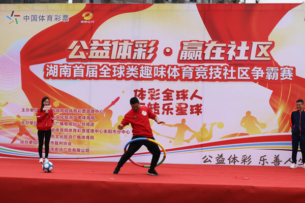 “公益体彩 赢在社区”是湖南省体育彩票管理中心和湖南电视台公共频道联合打造的一档面向社区和居民,以推广全民健身运动、宣扬体彩公益宗旨为目的,以群众体育竞赛和体育器材捐赠为主题的大型公益活动。活动自2016年起持续开展,已有全省14个市州的200多个社区、数万社区居民热情参与。今年活动首站10月11日在常德市桃源县开启,第二站来到衡阳常宁市,接下来还将在益阳、邵阳举办。
