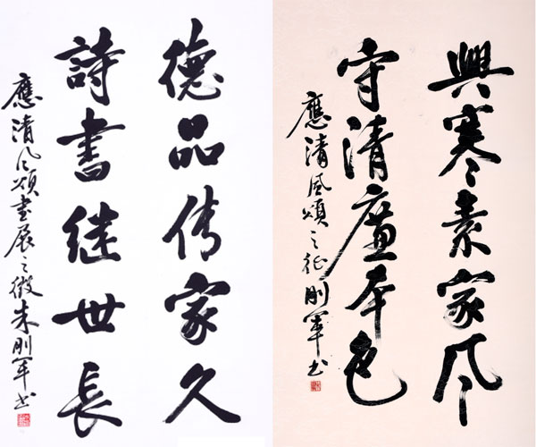 朱刚军的书法之路始于初中。每次写作文,语文老师每次都表扬他的作文内容不错,但批评他的字“就像鸡爪子爬的”,于是他下决心就将字练好。起初他练习的是硬笔书法,在书法的世界里浸润久了自然而然地开始练习毛笔书法。越练越爱,越爱越练,高中便担任学校书法协会主席,襄樊财税贸易学校上学时在学生会负责海报宣传等工作。