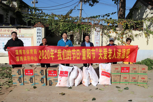 九九重阳节,浓浓敬老情。为进一步弘扬中华民族尊老、敬老、爱老的传统美德,营造欢乐祥和的社会氛围,10月23日,淄博市体育局、淄博市体彩中心开展“我们的节日·重阳节”活动,走进沂源县鲁村镇舍庄三村,为该村32位老人送上了节日的祝福,以实际行动践行责任彩票理念,将体彩温暖传递给他们。