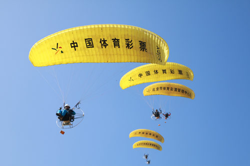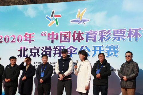 11月13日,“中国体育彩票杯”北京滑翔伞公开赛在延庆万科石京龙滑雪场隆重开幕,北京体彩中心副主任耿贞晖出席了开幕式。公开赛为期两天,近百位滑翔伞爱好者参加比赛。这是北京市今年举办的唯一一次滑翔伞赛事,也是北京体彩助力体育运动的又一项举措。