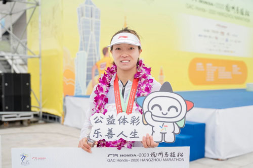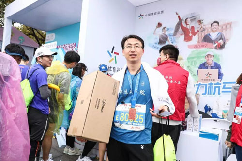 11月22日,2020年杭州马拉松鸣枪。作为杭马公益合作伙伴的浙江省体彩中心将“幸福中国 光芒汇聚”公益活动带到现场,在半马、全马终点设置体彩公益展台,在赛道两旁设置体彩加油站,组织了体彩拉拉队,还组团参赛。