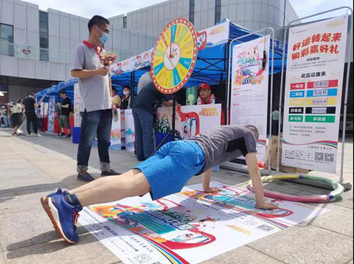 品牌推广落地活动旨在充分发挥中国体育彩票公益属性,进一步将体彩与全民健康深度融合,掀起全民健身热潮。活动现场,只要完成相应的运动项目,即可获得体彩定制小礼品一份。跳绳、呼啦圈、毽球等器械运动项目,开合跳、俯卧撑等徒手运动项目,市民参与热情高涨,一起运动、为健康中国加油助力。
