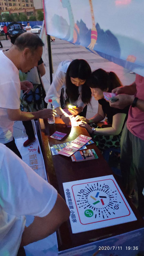 7月11日下午1时许,许多白山市民按往常习惯来到春江花园健身广场锻炼身体,但他们却被广场一角的两顶写着”公益体彩 乐善人生”的蓝色帐篷所吸引,正在驻足时,面带笑容的体彩工作人员走了过来,您好,我们是中国体彩的,现在正在进行的是“点亮健康中国”的公益活动,欢迎您用运动来为我们这座城市点亮打卡。随着工作人员的讲解,大家开始了解到了,此次“点亮健康中国”全民健身活动,是吉林省体彩采取“线上+线下”的参与模式,把活动的展位设进体彩公益金资助的指定健身路径、运动场馆等场所,在号召参与者进行运动打卡的同时,让更多人熟知公益体彩。