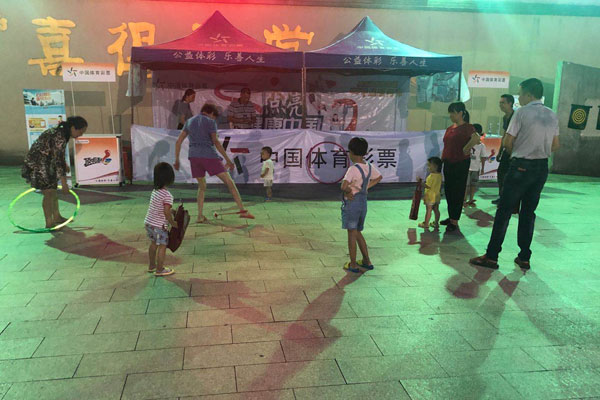 7月9日-13日,云浮体彩分别在市内城区、新兴、罗定、郁南等地的体彩公益金资助的体育场地共开展了五场以“点亮健康中国”为主题的公益体彩宣传和即开票推广活动。