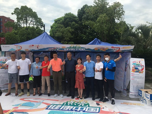 7月23日上午9点,“点亮健康中国”健身打卡活动来到了上海市嘉定区江桥镇金鹤公园内南广场上进行。上海市体育彩票管理中心副主任陈恭伟、公共关系科科长刘文董、嘉定区体彩中心主任毛旭洲莅临现场指导。