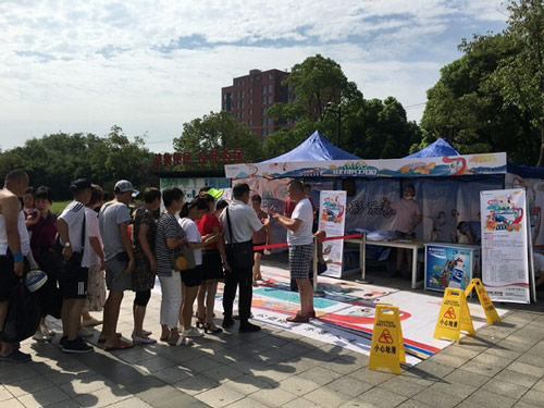 虽然天气非常炎热,但还是抵挡不住广大市民参与活动的热情。九点活动正式开始,在工作人员和志愿者们的引导下,参与者们排成了长长的队伍,纷纷选择自己拿手的运动来进行打卡。
