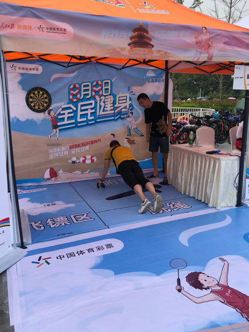“点亮健康中国”活动吸引了四川广大购彩者和群众的关注,并掀起了全民运动的热潮,在四川各地的体彩实体店内都能看到群众运动打卡的场景。跳绳、掷飞镖、俯卧撑……体彩实体店俨然成为人们的“健身房”。