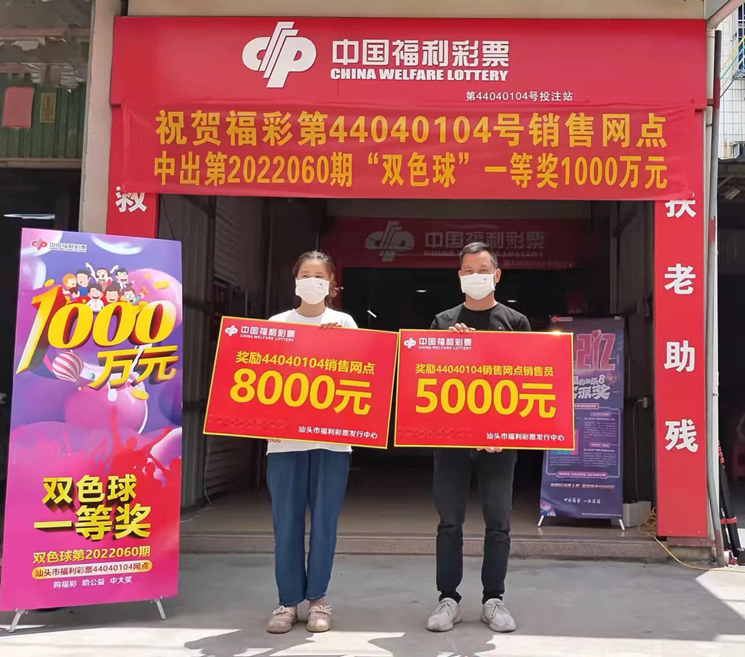 6月2日上午,汕头市福彩中心工作人员专程为该网点颁发荣誉牌匾,并分别奖励网点负责人8000元、销售员5000元奖金。
