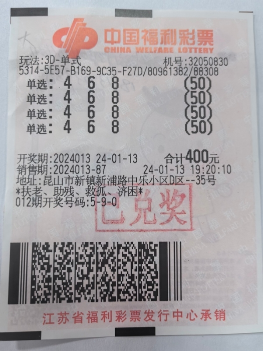 3月31日晚,位于肇庆市端州区雅图路雅图花园首层A7卡的44171402福彩投注站,中出60注3D游戏第2022080期单选大奖,加上派奖的奖金,共计90000元(含加奖27600元)。