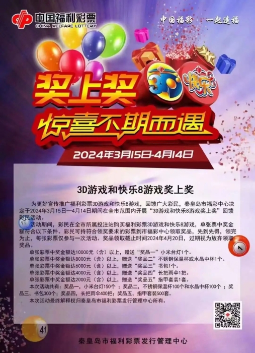 小玩法,大品牌,固定奖,天天开——玩福彩3D,天天有惊喜!感谢每一位购彩者对福彩公益事业的支持,愿您的每一份爱心和梦想,都会被好运眷顾上。